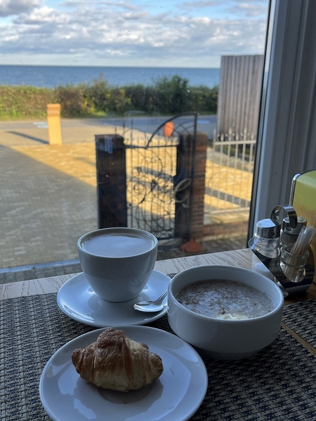 "Приехав на Балтийское море впервые в 2018 году, я сразу влюбился не только в саму Балтику, но и в Зеленоградск с его Курортным проспектом и променадом, Светлогорск с его соснами и шакарным видом с обрыва на море, Калининград: в красоту природы, архитектуры, открытость и доброжелательность людей, трамвай №3, хомлинов, в морской воздух и даже в погоду, несмотря на поговорку "Если вам не нравится погода в Калининграде, подождите 20 минут"). Ежегодные поздки на курорты Калининградского региона стали уже давно для нашей семьи доброй традицией, и, конечно, в первую очередь благодаря гостеприимсту семьи Кокориных в их "Золотой миле": здесь всё, начиная от шикарных люксов с видом на море или огромных семейных "трёшек", и заканчивая простым тёплым отношением персонала, начиная с Управляющего, заканчивая горничными. Особо хочу выделить шикарное расположение отеля: он находится действительно на золотой миле променада Зеленоградска, - в семи минутах ходьбы от центра и вместе с тем, вдали от шума машин, суеты торговых рядов (тут променад сужается и поднимается выше основного), как будто специально создан для романтических прогулок под шум Балтики.